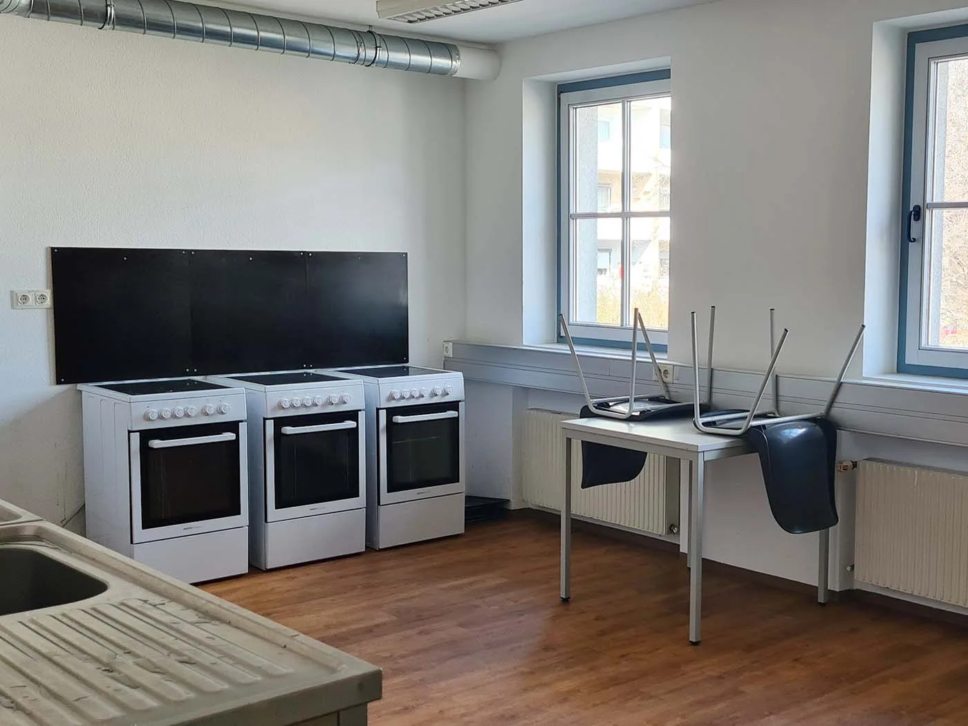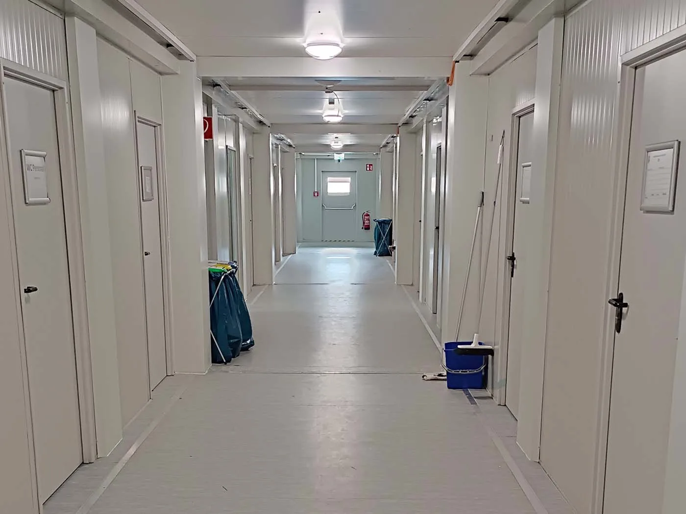 Die Häuser, die wir anmieten, sind ganz unterschiedlich: Teilweise handelt es sich dabei um alte Hotels, neu konzipierte Container, oder auch leerstehende Häuser. Wir halten uns dabei natürlich an die vorgegebenen Standards. Unser Team Infrastruktur ist stets mit vielen Handwerkern im Einsatz.